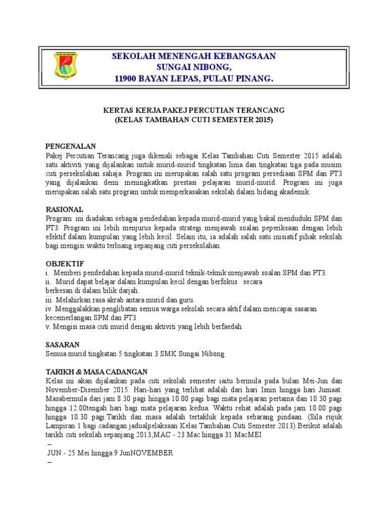Kertas Kerja Kelas Tambahan Cuti Semester Pdf